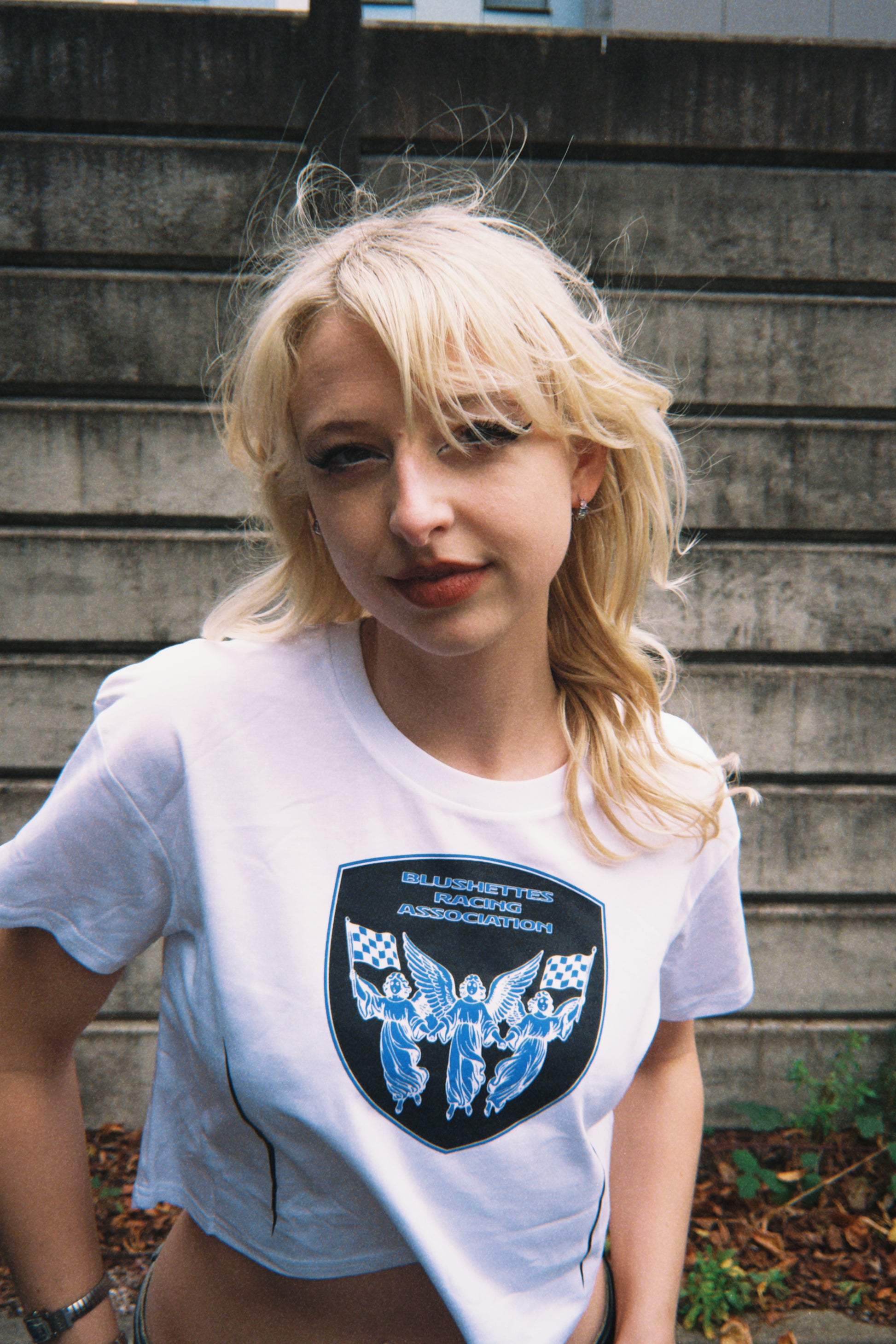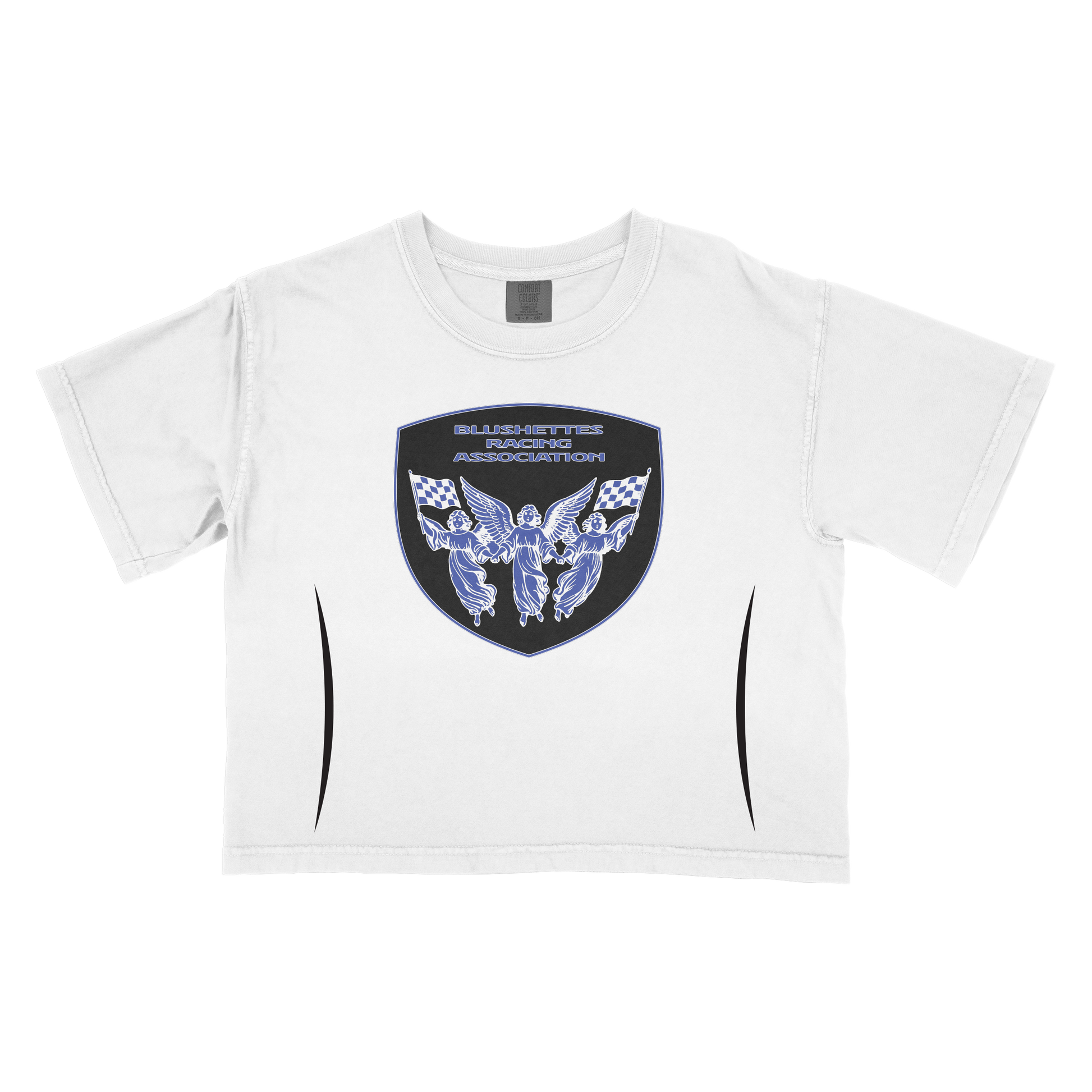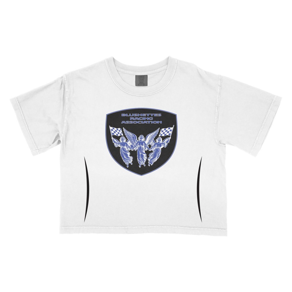 Blusherettes Racing Association crop top T-Shirt. Printed on an AS Color Crop Top