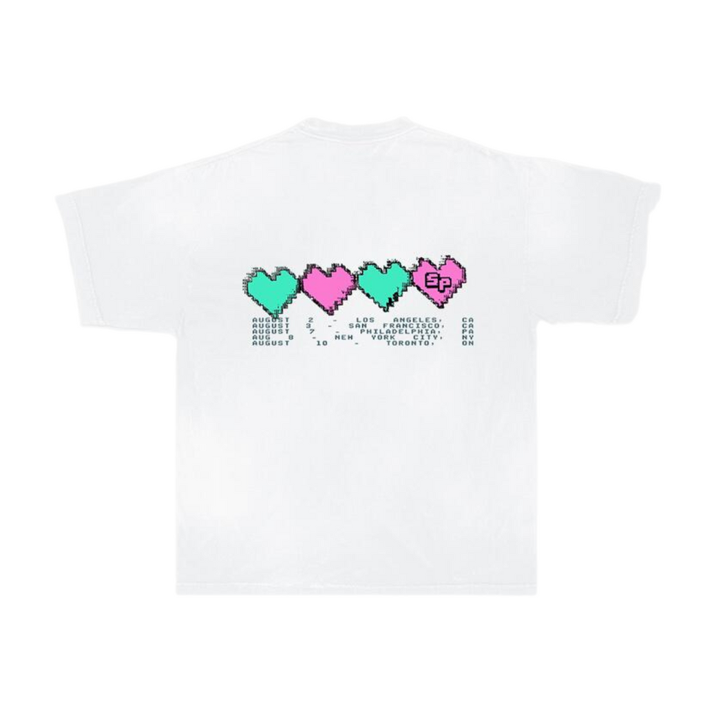 White unisex Sophie Powers t-shirt with tour dates on the back