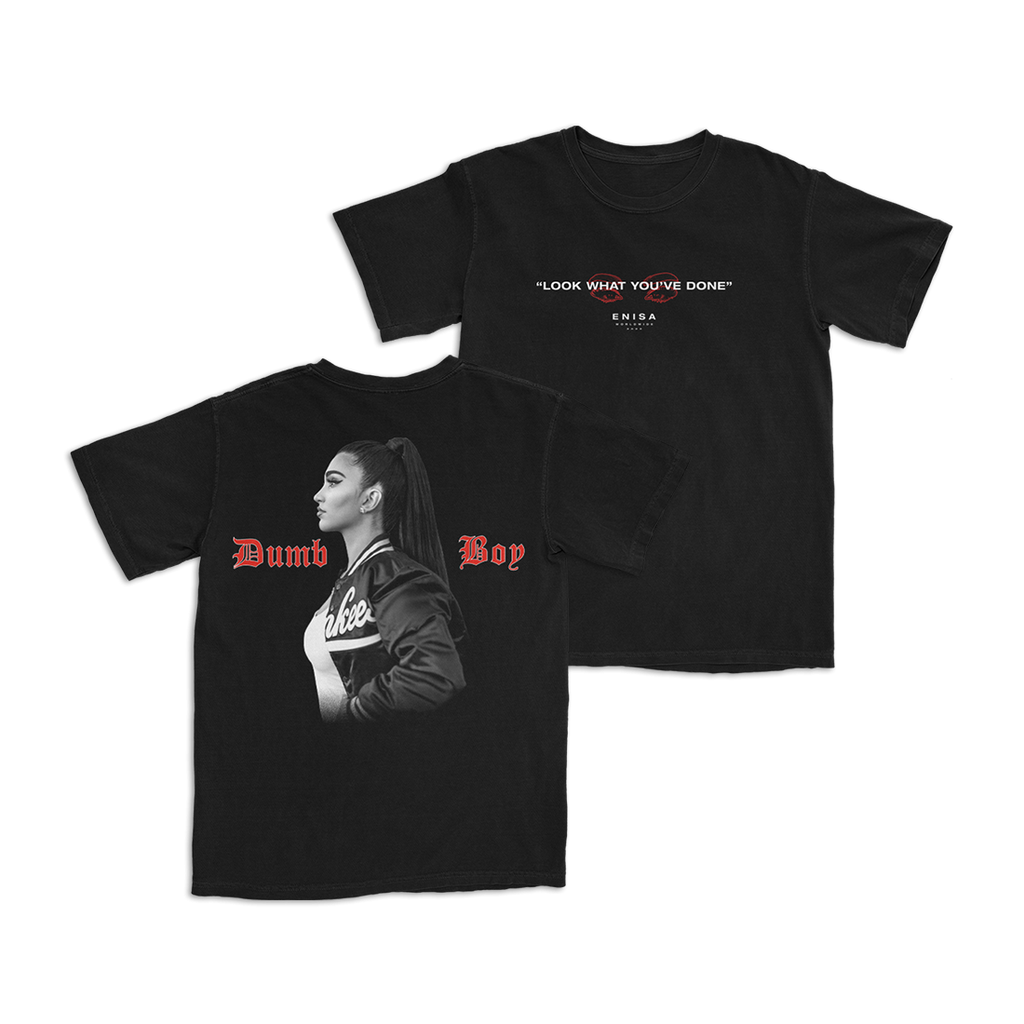 The ENISA Look What You've Done Tee features Look What Youve Done' on the front and Dumb Boy' written in red on the back with an image of ENISA. This design is printed on a black unisex t-shirt. Depiction of this product is a digital rendering for illustrative purposes only. Actual product detailing may vary. We will not be able to issue refunds of exchange for size. Please review FAQs for details. For this item you will not receive a ship confirmation email nor tracking. Please be assured that your order will ship to arrive in 9-12 business days. This product is made on demand and not returnable.