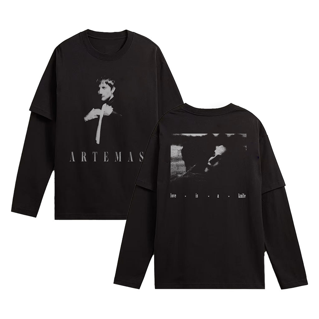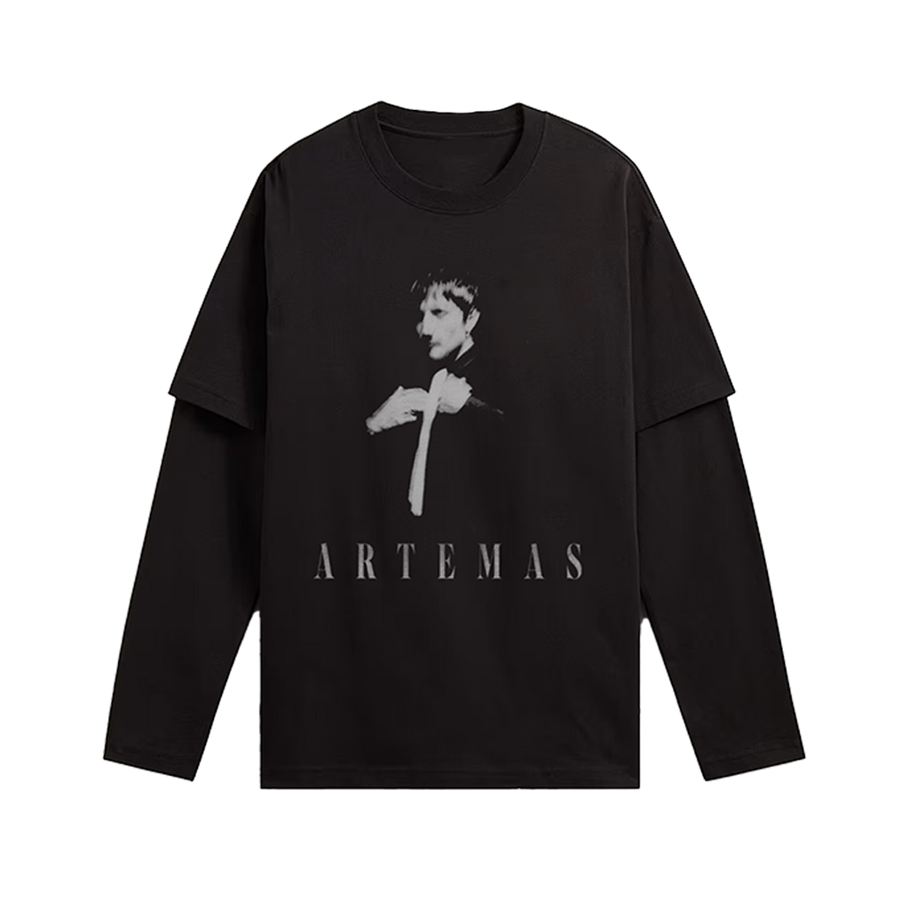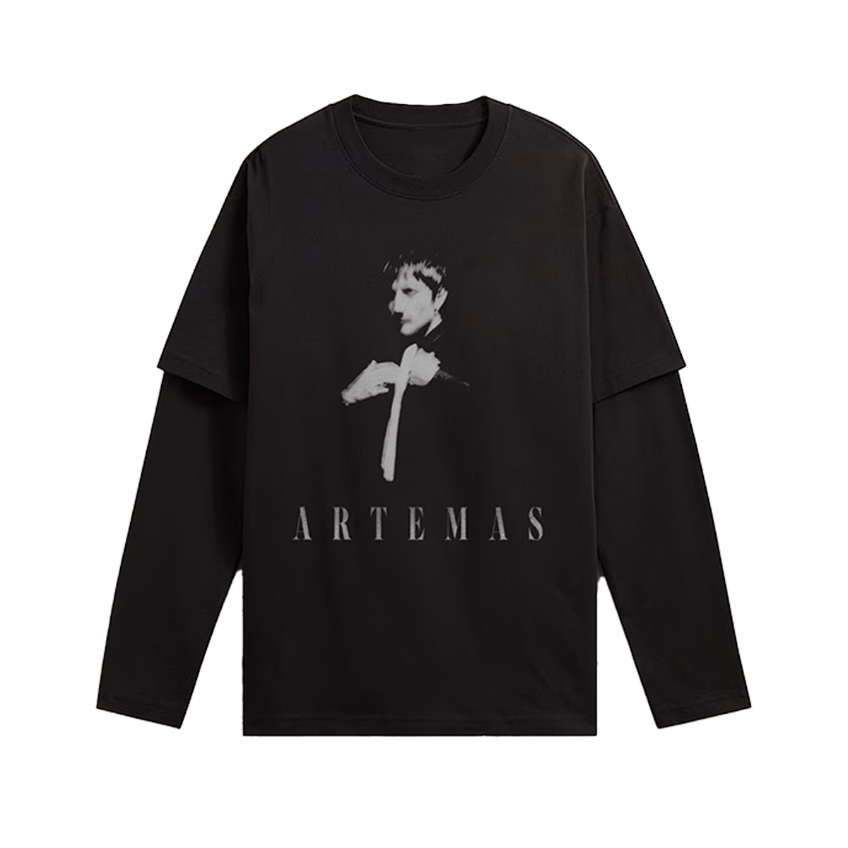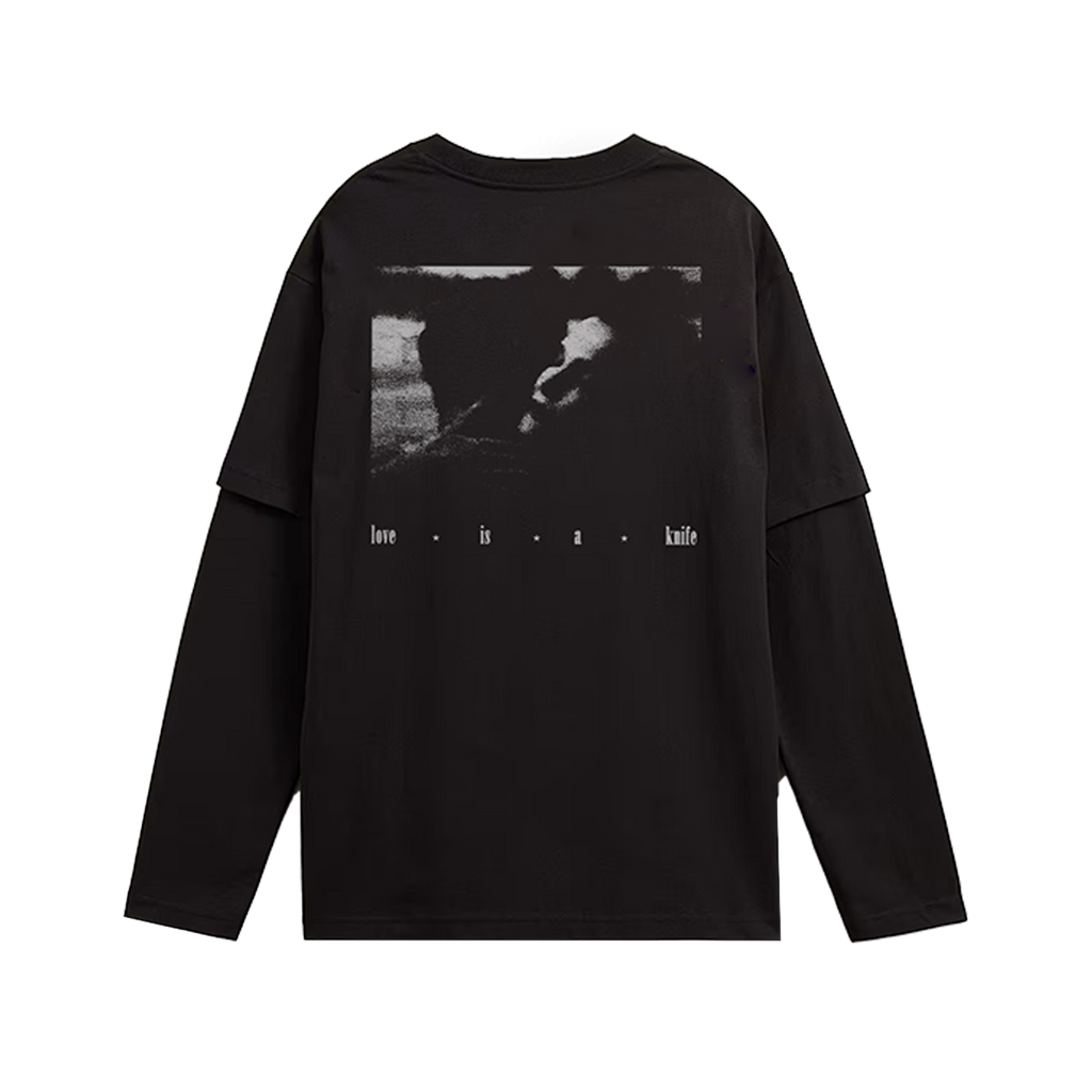 Black twofer t-shirt made from 180gsm 100% cotton with front and back screenprinted designs