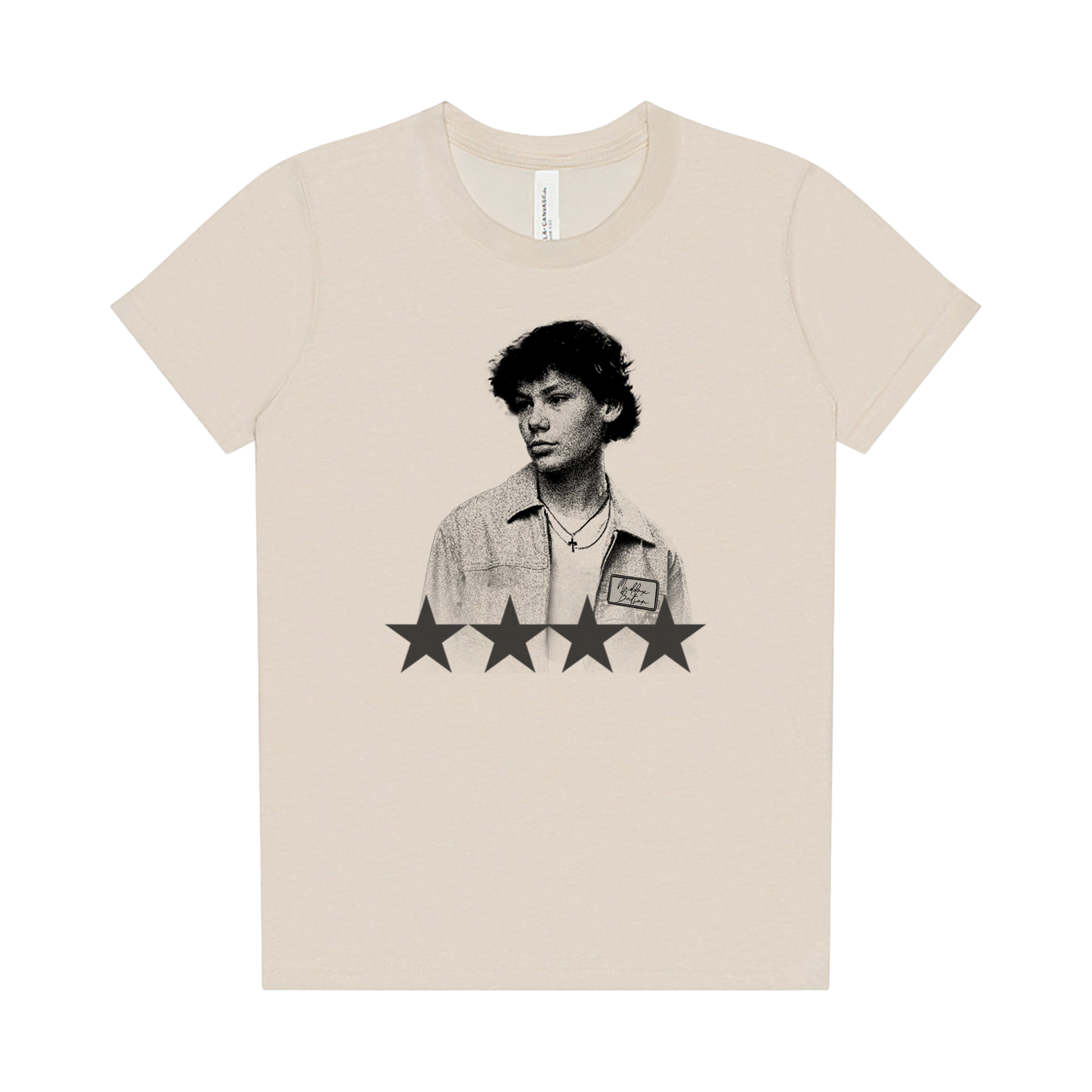 Printed on a heather dust color classic fit youth t-shirt