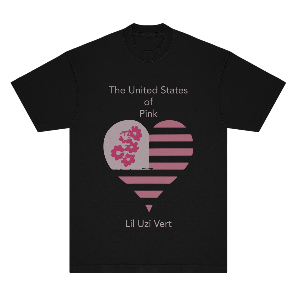 The United States of Pink T-shirt from Lil Uzi Vert features a heard design printed on the front of a black unisex t-shirt